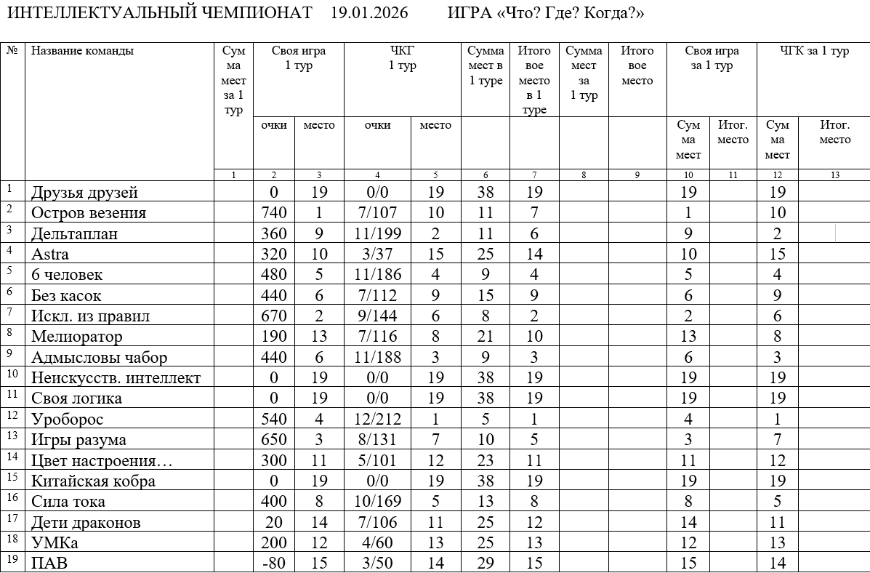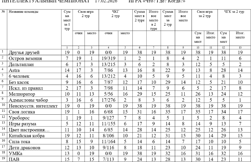Если не считать технических аутсайдеров («Друзья друзей» и «НЕискусственный интеллект», ау-у! Вы где? Мы без вас скучаем!), то одинаковую сумму баллов в двух играх набрали также «Сила тока» и «Игры разума» – по 14, «Цвет настроения» и «Мелиоратор» – по 25. Их тоже разводил по местам приоритет «ЧГК».