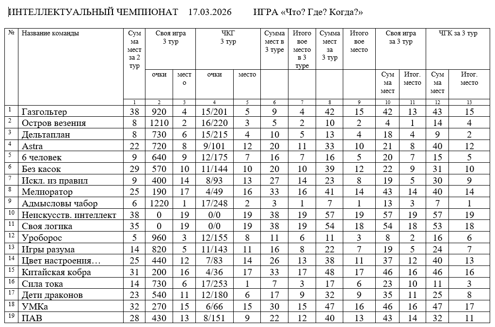Итоги мартовского тура чемпионата по интеллектуальным играм