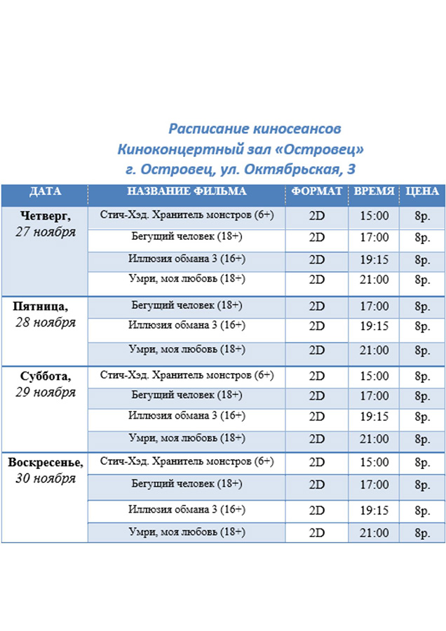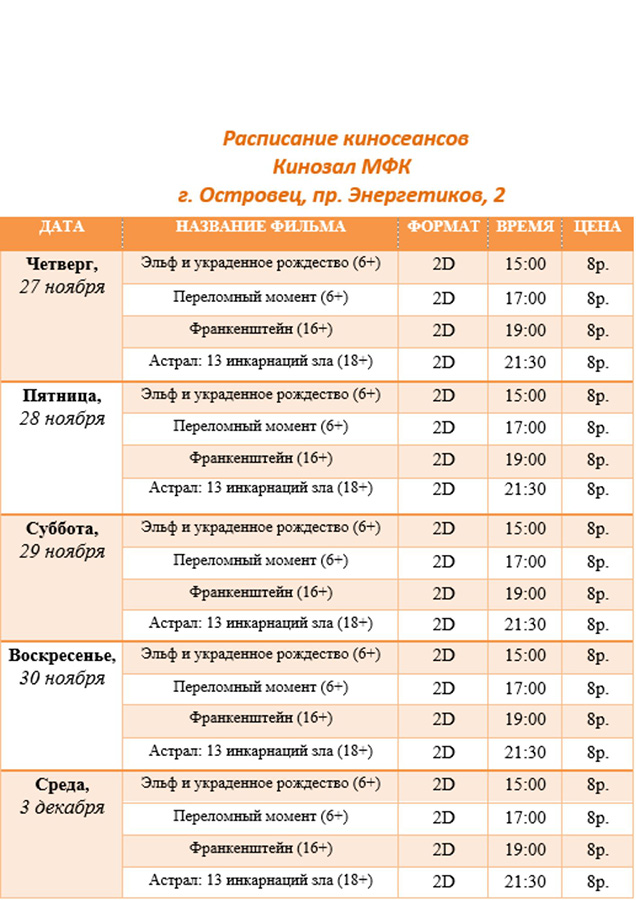 Расписание киносеансов