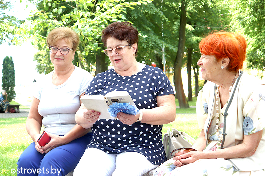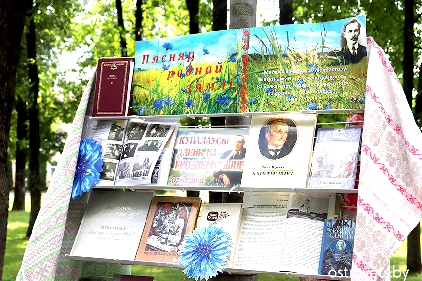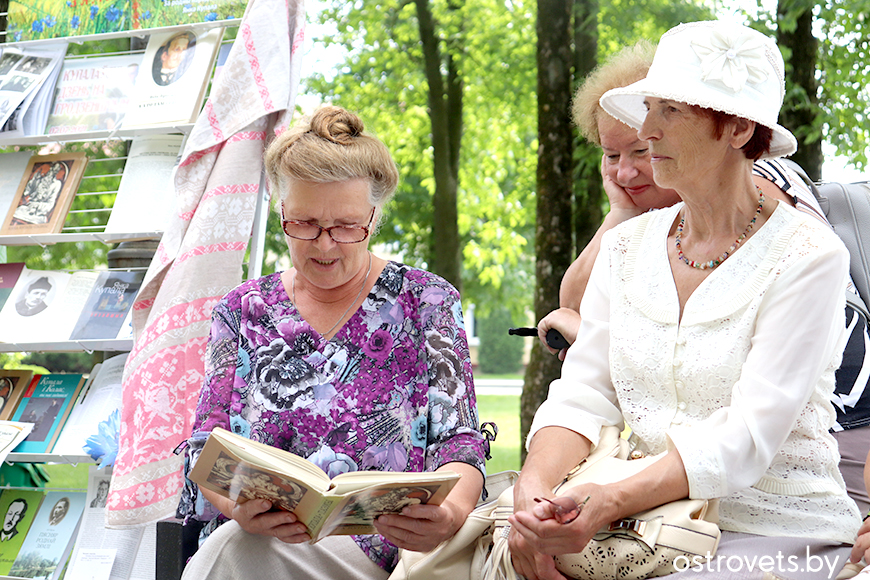 Свята «Не змоўкне голас песняра» прыпала на сераду, калі работнікі бібліятэкі арганізоўваюць чытальную залу ў скверы ў Астраўцы.