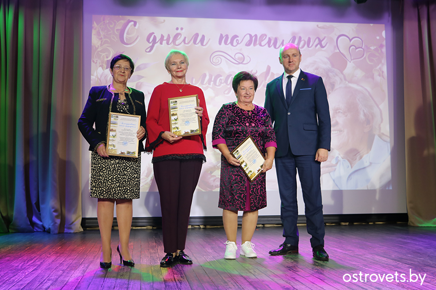 Многочисленные пожелания в адрес людей золотого возраста звучали от представителей общественных объединений: председателя районной организации «Белая Русь» Ирины Раткевич, которая прочла трогательное стихотворение; районного лидера Белорусского союза женщин Натальи Баницевич, которая восхищалась жизнелюбием, красотой и бодростью ветеранов; первого секретаря райкома ОО БРСМ Ольги Максимовой, благодарившей за опыт и мудрость, которыми они делятся с молодыми. Не обошлось и без наград. Благодарственные письма и подарки получили Зоя Бобер и Тереса Магадя, Мария Василёнок и Ирина Шляхтун.
