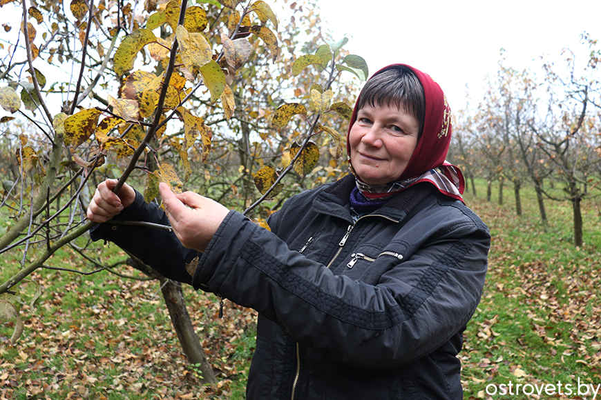 – «Ліга» чырвонае і прадаўгаватае, «алеся» з прыемнай кіслінкай і добра захоўваецца. Цешуся, калі яблыкі ўрадзілі, нібыта гэта мой сад, – працягвае жанчына. – Блізкія таксама іх любяць (я двойчы мама і бабуля), а муж больш спакойны. Ён працуе ў нашай гаспадарцы загадчыкам рамонтна-механічных майстэрань у Трокеніках. Так што для нашай сям’і Дзень работнікаў сельскай гаспадаркі – падвоенае свята.
