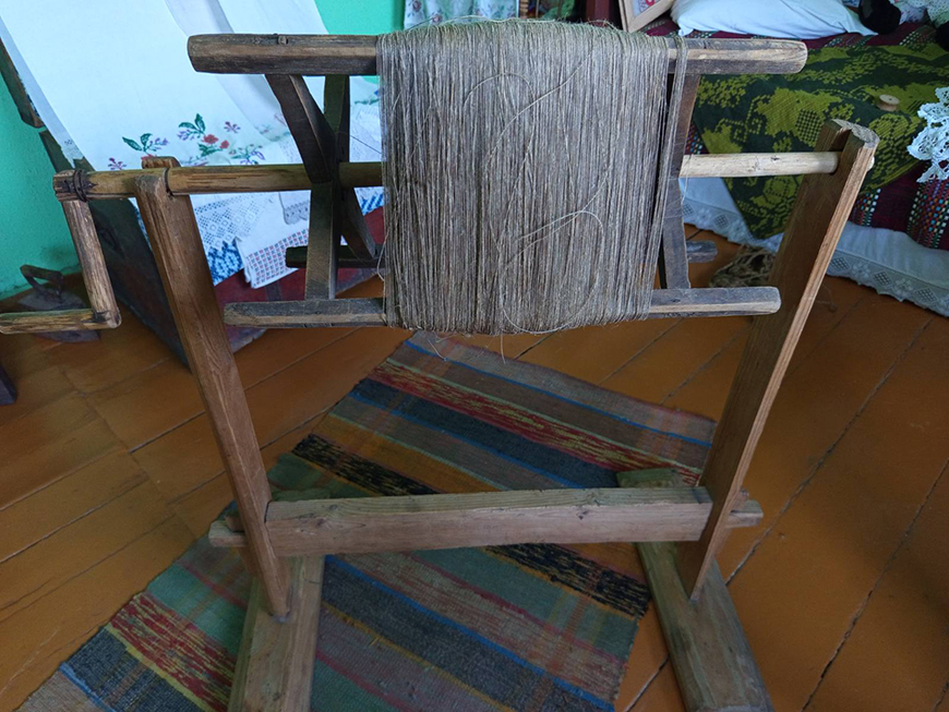Пасля маткі сушылі, ніткі змотвалі ў клубкі. Генрых Лукашэвіч расказаў, што такія матавілы былі ў яго цешчы і ў бабулі, якія і пралі, і ткалі.