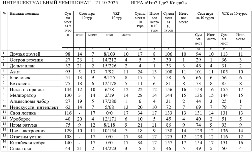 Интеллектуальный чемпионат: Определилась тройка лидеров, но места в ней всё ещё под вопросом