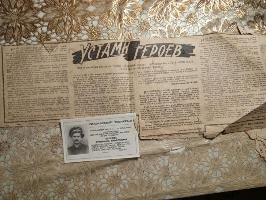 Самое главное, что помнят его потомки. Семейные фотографии, документы, предания бережно хранит внучка Трофима Евсеева Зинаида, которая живёт на Урале.
