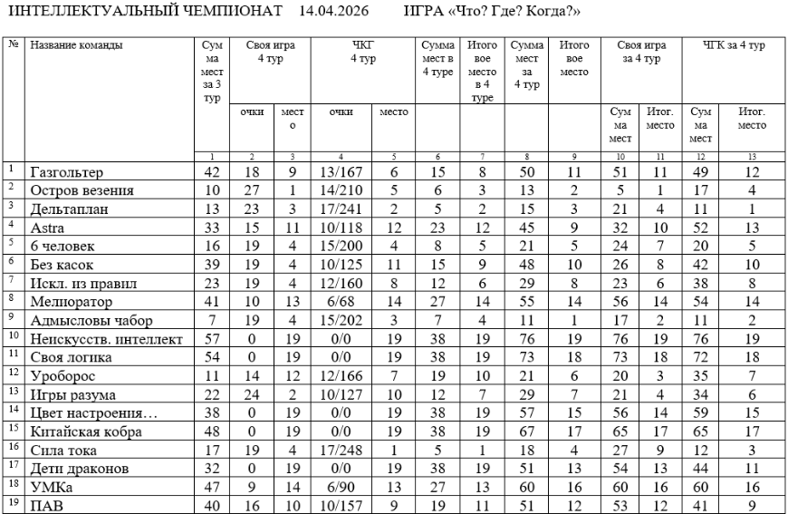 А вот «Сила тока» на этот раз была на высоте: команда стала лучшей в апрельской игре и приблизилась к тройке лидеров на вполне преодолимые 3 очка (конечно, при условии, что лидеры позволят ей преодолеть это небольшое расстояние).